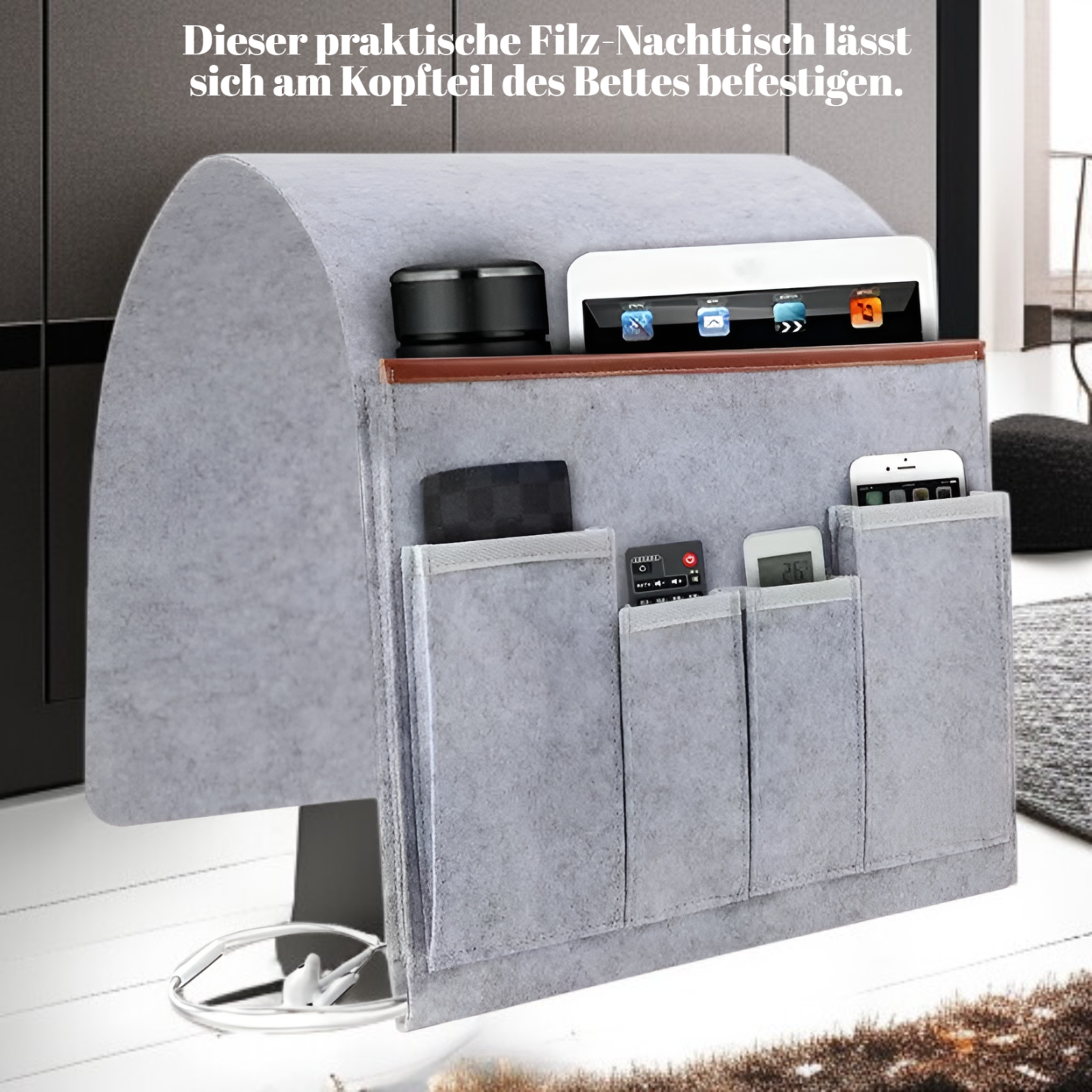 ● Praktische Filz Nachttasche für das Bettkopfende bietet zusätzlichen Stauraum für Bücher, Handy, Fernbedienung und mehr – alles griffbereit, ohne aufzustehen.